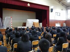 振替休日明けの水曜日、解団式が行われ、代表生徒が挨拶を行いました。これから自主研修の班ごとに得られた経験や思い出を研修報告書にまとめます。
