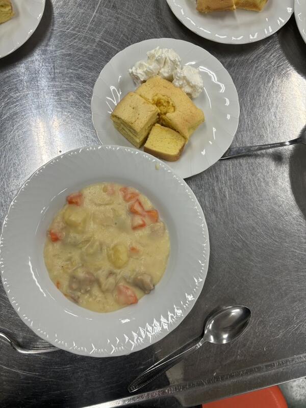 班替え前の最後のグループでわくわくしながらクッキングしました!!シフォンケーキは焼き上がるまで少し時間が必要だったけど、すごく美味しくできたので良かったです!生クリームを横に付けるだけで美味しさ倍増しました!クリームシチューは思っていたよりも簡単に美味しく作れて良かったです!